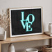 Verwandle deinen Wohnbereich in einen beruhigenden Ort, an dem du es dir mit unseren besonderen Motiven gemütlich machen kannst. Das Poster ist ein echter Hingucker an der Wand. Der blaue Schriftzug „LOVE“ erstrahlt in Neonlicht-Optik und hebt sich besonders gut vom dunklen Hintergrund ab.