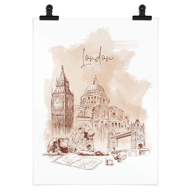Zuhause ist der Ort, an dem man sich am besten entspannen kann. Umso wichtiger ist eine schöne Umgebung, die zum Wohlfühlen einlädt. Der Künstler zeigt die Wahrzeichen Londons: Big Ben, Tower Bridge, St. Paul's Cathedral, den Löwen auf dem Trafalgar Square sowie eine Teekanne und eine Teetasse.