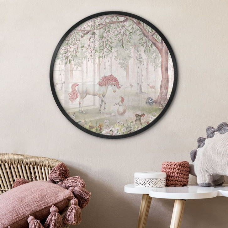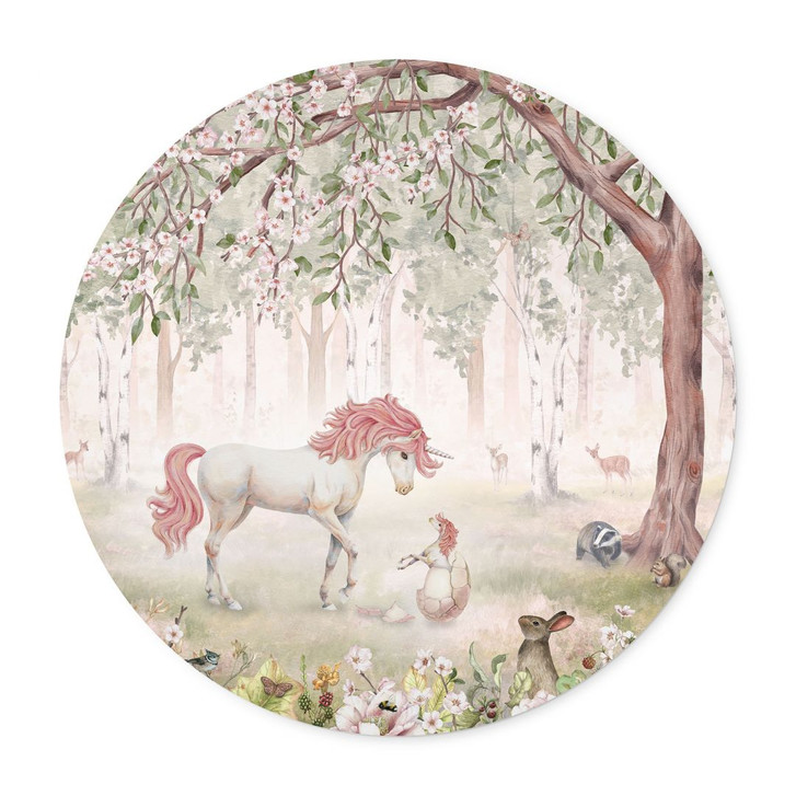 Poster Märchenhafter Wald mit Einhörnern - Kikki Belle - Rund