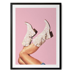 Wenn du auf der Suche nach kreativer und ausdrucksstarker Wandkunst bist, bist du hier genau richtig. Manovskis farbenfrohe Fotokunst zeigt eine Barbie-Puppe in einem rosa Kleid mit Leopardenmuster.