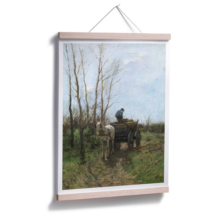Dieses Gemälde von Mauve zeigt einen Bauern, der mit einer Pferdekutsche Holz sammelt. Die Grautöne verleihen dem Bild eine melancholische Stimmung. Es bringt dem Betrachter das Landleben und die Natur näher.