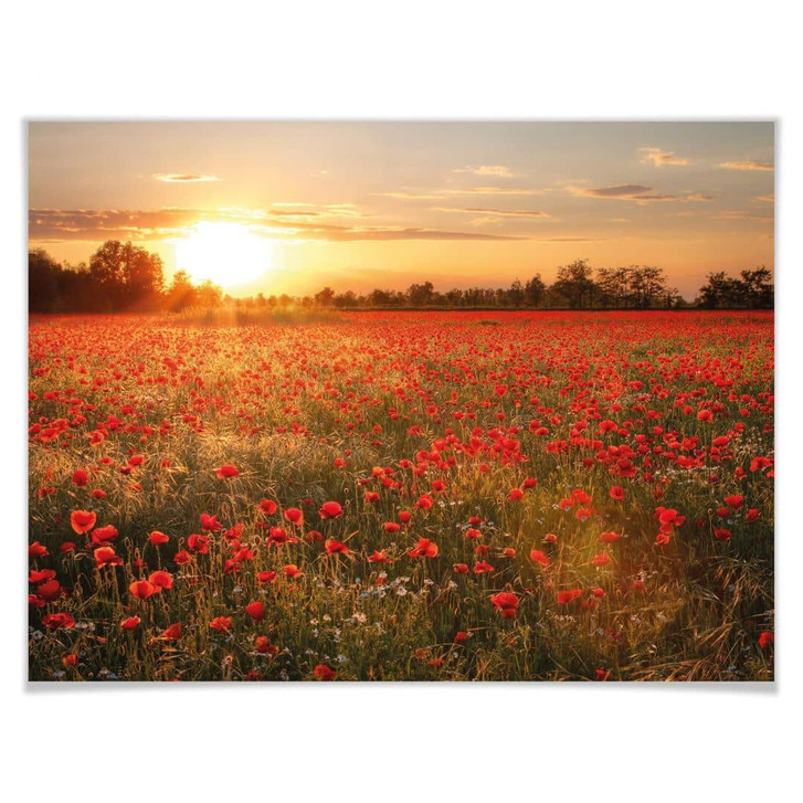Poster Mohnfeld im Sonnenuntergang