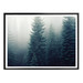 Dieses traumhafte Poster verzaubert auf den ersten Blick – die Kombination der dunklen und stark farbigen Nadelbäume im Vordergrund mit dem zarten Nebel dahinter lädt zum Träumen und Verweilen ein. Die Tiefe des Waldes wird in diesem Dekoartikel mithilfe der unterschiedlich hohen Bäume gekonnt in Szene gesetzt und strahlt eine angenehme Ruhe aus. Die mystische Wirkung des Bildes ist einzigartig, trotz des scheinbar einfachen Motivs. Ähnlich verhält es sich mit der Farbgebung des schönen Waldbildes: In einem schlichten Dunkelgrün mit leichtem Blaustich gehalten, lebt das Wandaccessoire farblich erst durch die ausgiebigen Farbabstufungen auf, was das Bild umso prächtiger wirken lässt. Die dunklen Farbtöne in den Tiefen der Bäume im Vordergrund harmonieren mit dem leichten Nebel im Hintergrund, der die Bäume in ein zartes, verschwommenes Blaugrün hüllt, sowie mit dem weissen Rand des Bildes.