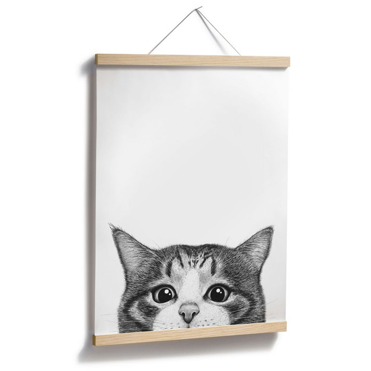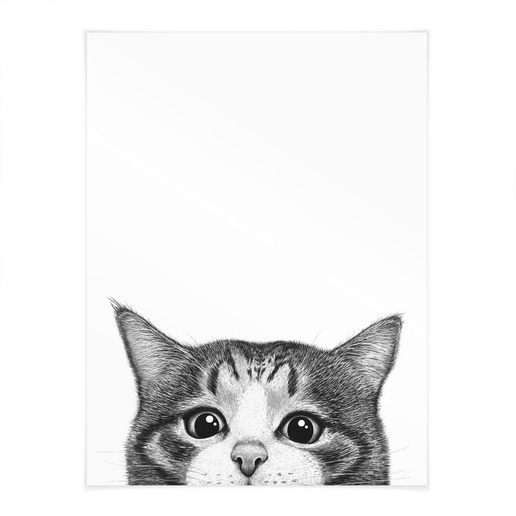 Das Poster von Valeriya Korenkova zeigt eine neugierige Katze, die mit ihrem verschmitzten Gesichtsausdruck und den grossen, aufmerksamen Augen jeden Raum zum Leben erweckt. Die schwarz-weisse Darstellung betont meisterhaft die feinen Details der Illustration und verleiht dem Motiv eine zeitlose Eleganz. Diese minimalistische Ästhetik harmoniert perfekt mit modernen und klassischen Einrichtungsstilen und verleiht jedem Wohnraum eine stilvolle Note.