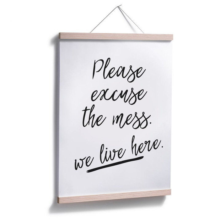 Ist deine Wohnung unordentlich und chaotisch, weil du keine Zeit zum Putzen hast? Verwende dieses Poster, um deinen Gästen zu sagen: „Entschuldige die Unordnung, aber so leben wir nun mal.“ trenddeko.ch hat noch mehr Poster mit tollen Sprüchen und Dingen, die einfach gesagt werden müssen – schau mal rein!