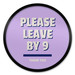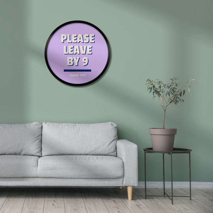 Mit „Bitte bis 9 Uhr verlassen“ in runder Form setzt du ein humorvolles, aber stilvolles Statement, das sowohl modern als auch praktisch ist. Perfekt für alle, die Wert auf klare Kommunikation und ein stilvolles Ambiente legen.