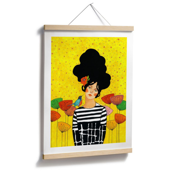 Sonnenwarm, grafisch und poesievoll – dieses Poster bringt gute Laune und leise Stärke an Ihre Wand.