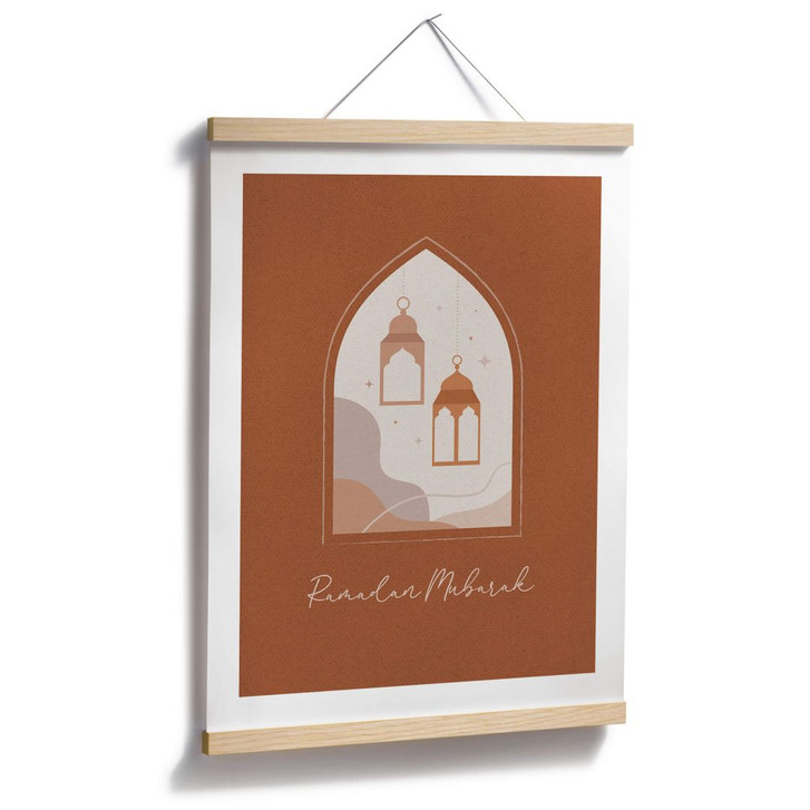 Möchtest du dein Zuhause für die Jahreszeit dekorieren? Wir haben eine grosse Auswahl an dekorativen Wandaccessoires, die dich glücklich machen werden. Dieses Poster eignet sich perfekt zur Dekoration während des Ramadans. Durch das geschwungene Moschee-Fenster blickt der Betrachter direkt in die Nacht auf bezaubernde Laternen. Darunter steht die Aufschrift „Ramadan Mubarak“ – „Froher Ramadan“.