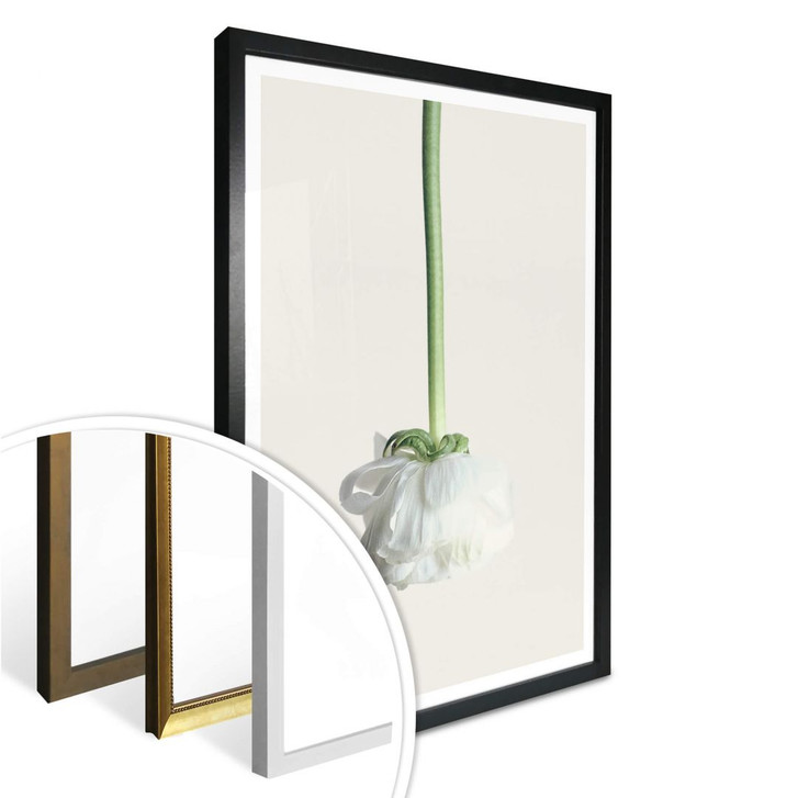 Das Poster mit der weissen Blume ist in verschiedenen Grössen erhältlich. Die kreative Wandgestaltung kannst du gleich mitbestellen.