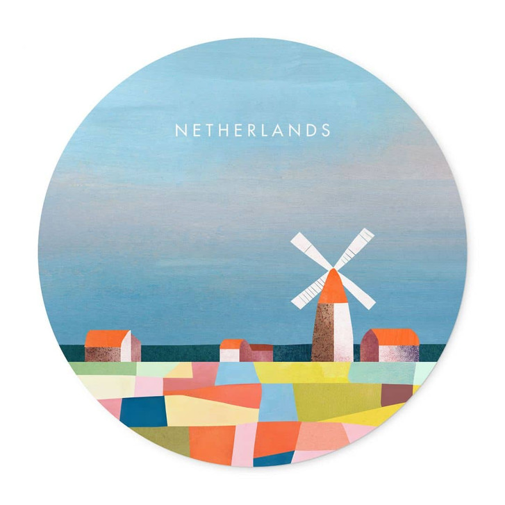 Es ist Zeit für einen neuen Look. Mit diesem Wandbild lassen sich das eigene Zuhause und das Büro besonders eindrucksvoll gestalten. Für Liebhaber der Niederlande ist dieses kreisrunde Motiv aus unserer Serie Städte & Reisen ein Muss. In den Niederlanden erwarten dich weite, grüne Landschaften, zahlreiche Tulpenfelder, interessante Sehenswürdigkeiten und historische Windmühlen. Das Reisemotiv von Henry Rivers ist eine Hommage an ein Land, das für seine Natur, einzigartige Kultur und Gastfreundschaft bekannt ist. Er malte die Felder in leuchtenden Farben und abstrakten Formen, die die Vielfalt des Landes symbolisieren. Der blaue Himmel hingegen strahlt Ruhe, Beständigkeit und Idylle aus. Mit diesem Kunstdruck holst du dir einen Hauch holländisches Flair nach Hause! Wir bieten dieses Motiv in verschiedenen Ausführungen und in unterschiedlichen Grössen an.