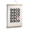 Das auf hochwertigem Papier gedruckte Poster bietet eine glatte Oberfläche und brillante Farben, die jedem Raum eine lebendige Atmosphäre verleihen. Die klare Typografie und die farbige Discokugel ziehen sofort die Aufmerksamkeit auf sich und erinnern an die Zeiten, als die Tanzfläche das Zentrum jeder Party war.