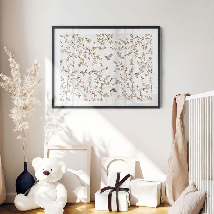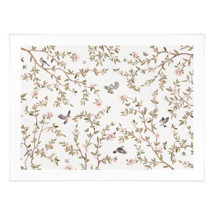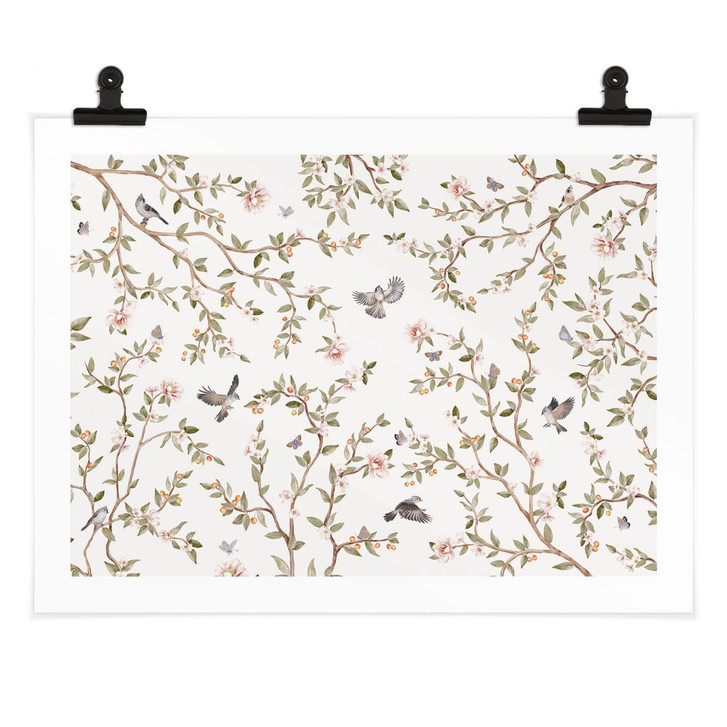 Zarte Blüten und Vögel – ein verträumtes Naturmotiv als Poster