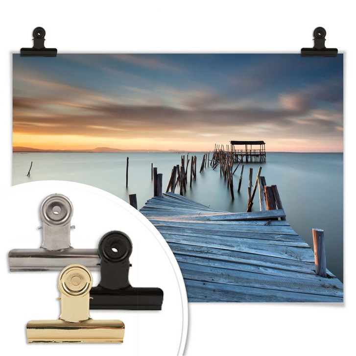 Die Luft hat sich abgekühlt, der Sturm ist vorüber und die Abendsonne ist wieder zu sehen. Die Ruhe, die hier vor dem Sturm herrschte, ist zurückgekehrt. Alles ist wie zuvor – bis auf die alte Holzbrücke, die einst zu der kleinen Strandhütte führte und nun endgültig zerstört ist. Schmücke deine Wand mit diesem grossartigen Foto und schaffe ein warmes und kühles Farbschema in deinem Zuhause!