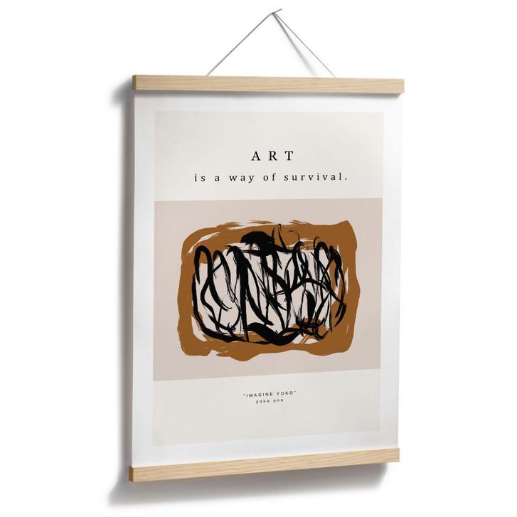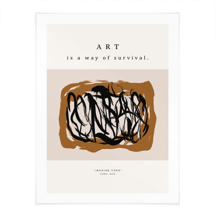 Dieses hochwertige Poster von Treechild vereint Ausdruck und Inspiration in einem modernen Design. Die wilden, schwarzen Pinselstriche auf einem warmen Mokka-Hintergrund vermitteln Bewegung, Energie und Emotion. Ergänzt wird das Werk durch das aussagekräftige Zitat „Art is a way of survival“ aus „Imagine Yoko“ von Yoko Ono – eine Hommage an die transformative Kraft der Kunst.