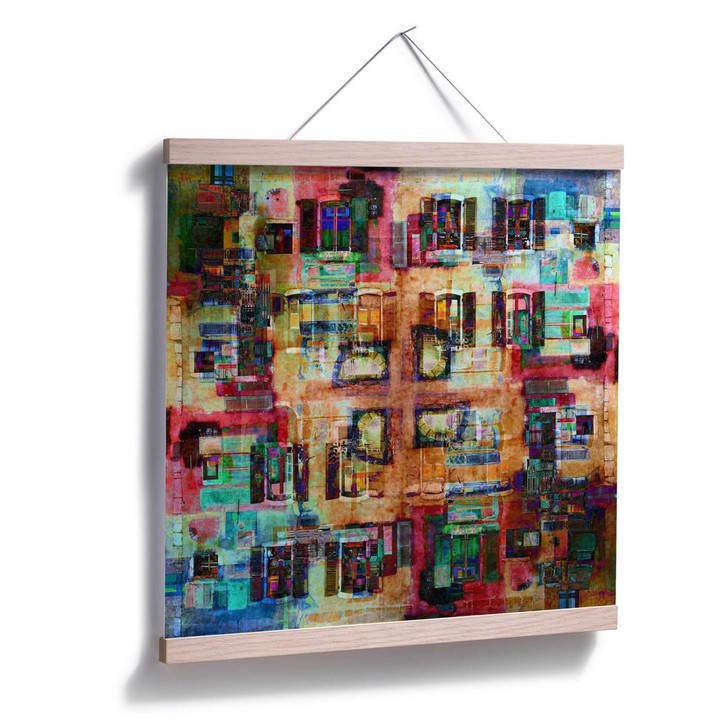 Dieses farbenfrohe Kunstwerk von Igor Shrayer bringt Schwung in deine Räume! Das abstrakte Bild zeigt ein Durcheinander von Fenstern, Fensterläden und verschiedenen Farben. Es ist völlig durcheinander. Wenn du etwas Bewegung in deine sterilen Räume bringen möchtest, dann ist dieses trendige Pop-Art-Bild genau das Richtige für dich.