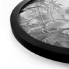 Du möchtest dein Zuhause optisch aufwerten? Mit diesem runden Wandbild setzt du sofort neue Akzente im Raum. Hol dir tropisches Dschungelflair ins Haus! Stell dir vor, du gehst mit deinen Kindern auf eine spannende Expedition – ohne die eigenen vier Wände zu verlassen. Der einzigartige Regenwald beherbergt eine grosse Vielfalt an Flora und Fauna. Hohe Palmen, üppige Gräser und malerische Gewässer runden das Bild der tropischen Landschaft ab. Ein Abenteuer für die ganze Familie. Sir Edwards schwarz-weisse Illustration schafft einen modernen Look, der durch viele kleine Details besticht.