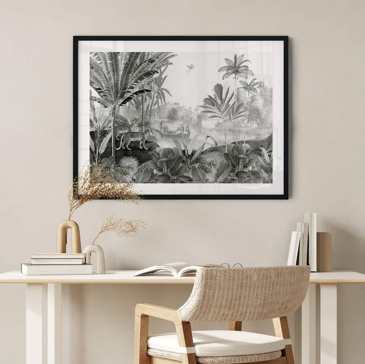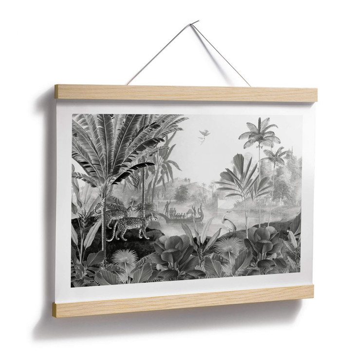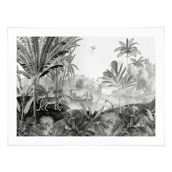 Verwandle deinen Wohnbereich in einen beruhigenden Ort, an dem du es dir mit unseren klassischen Motiven gemütlich machen kannst. Bringe tropisches Dschungel-Flair in dein Zuhause! Stell dir vor, du und deine Kinder begeben sich auf eine spannende Expedition – ganz ohne Stress in den eigenen vier Wänden. Der einzigartige Regenwald beherbergt eine grosse Vielfalt an Flora und Fauna. Hohe Palmen, üppige Gräser und malerische Gewässer runden das Bild der tropischen Landschaft ab. Ein Abenteuer für die ganze Familie. Die schwarz-weisse Illustration von Sir Edward schafft einen modernen Look, der mit vielen kleinen Details beeindruckt.