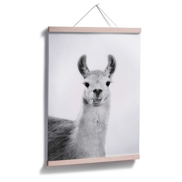 Schmücke deine Wand mit dem schwarz-weissen Tiermotiv von Sisi & Seb und verbreite gute Laune mit dem „Happy Llama“!