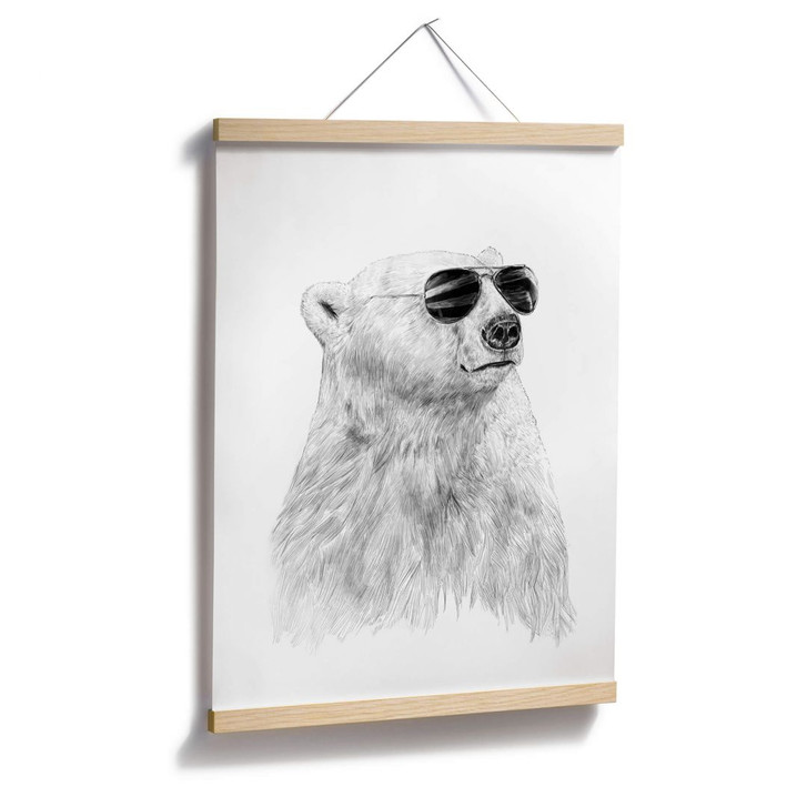 Verleihe deinem Wohnzimmer mit dieser Wandkunst einen modernen Touch! Wohnungseinrichtungen spiegeln deine Persönlichkeit wider und schaffen eine einzigartige Wohlfühloase. Diese Illustration des Künstlers Balazs Solti eignet sich besonders gut dafür. Das Poster zeigt das Porträt eines Eisbären. Er trägt eine coole Sonnenbrille und hofft, dass die Sonne heute nicht untergeht.