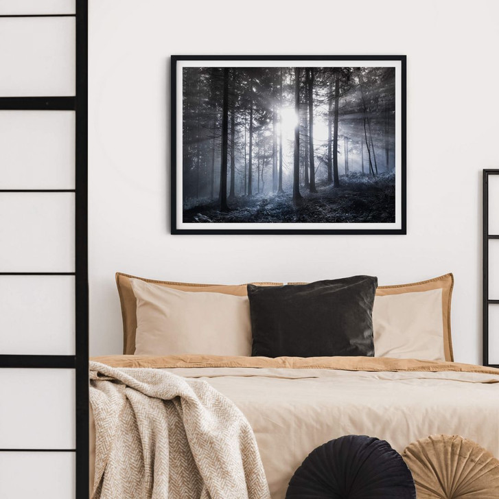 Möchtest du dein Zuhause optisch aufwerten? Dieses Dekoelement verleiht deinem Raum sofort eine neue Note. Die Fotokunst schafft ein warmes Raumgefühl und erweitert deinen Blick – lass dich überraschen. Das Motiv aus der Serie Natur und Wald & Bäume strahlt eine entspannende Natürlichkeit aus, die zusammen mit dem Querformat des Bildes eine erholsame Wohnatmosphäre schafft. Der Anblick der schönen Landschaft ruft ein Gefühl von Ruhe und Frieden hervor. Der weitläufige Waldblick lässt den Raum grösser und lebendiger erscheinen. Dieses Wandaccessoire ist ideal für einen natürlichen Einrichtungsstil. Das schwarz-weisse Poster ist auf speziellem Posterpapier gedruckt, das sich leicht an Ihrem Lieblingsplatz anbringen lässt. So können Sie im Handumdrehen stilvolle Akzente setzen.