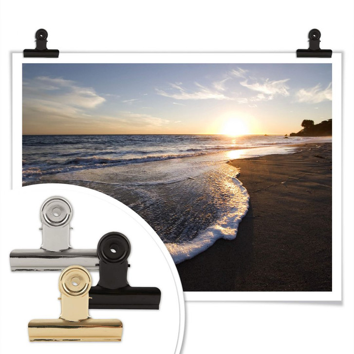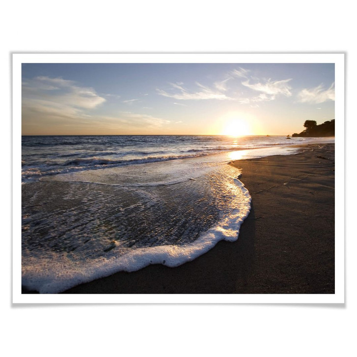 Romantik pur bietet das Poster „Sonnenuntergang am Meer“. Der Blick auf die am Horizont versinkende Sonne weckt Erinnerungen an Urlaubstage am Meer. Ein breiter Sandstrand wird von seichten Wellen umspült und spiegelt die letzten Sonnenstrahlen in einem warmen Goldton wider – die perfekte Kulisse für viele romantische Momente. Dieses ausdrucksstarke Poster ist die perfekte Wanddekoration für Wohn- und Schlafzimmer, wobei der maritime Look insbesondere im Wohnzimmer durch die Kombination mit den passenden Wohnaccessoires noch verstärkt wird. Lass dich jeden Tag von diesem Poster mit der Weite des Meeres verzaubern und träume von deinem nächsten Urlaub. Vielleicht verschlägt es dich ja genau an den Ort, an dem du diesen wunderschönen Sonnenuntergang im Original bewundern kannst.