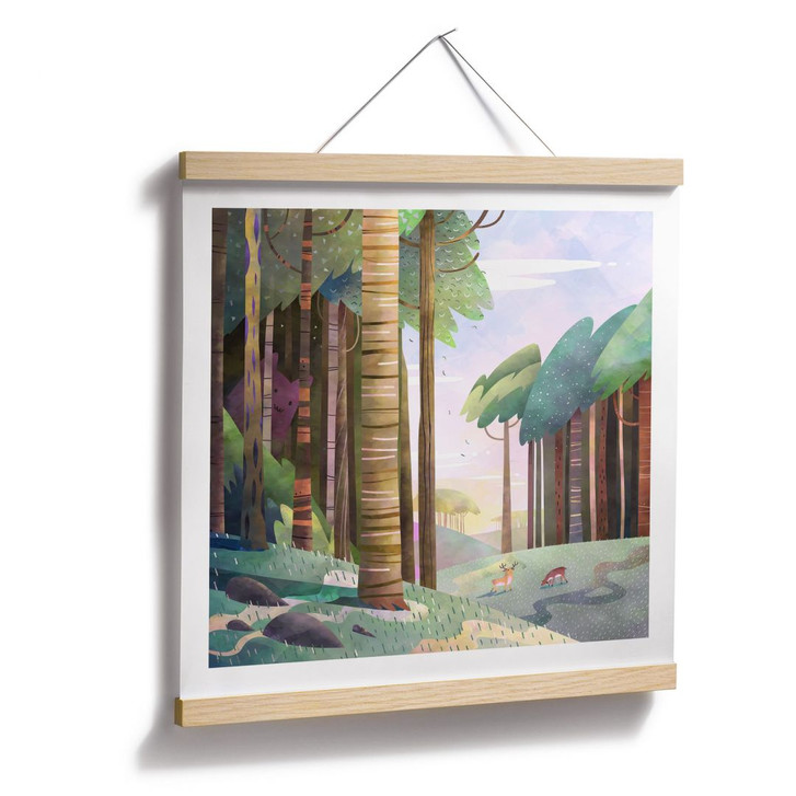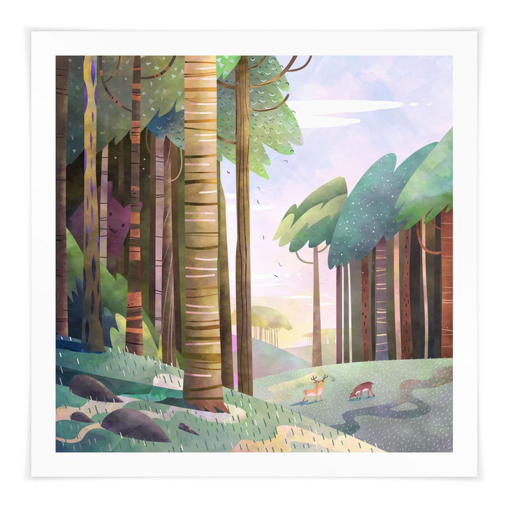 Poster Sonniger Wald mit Hirsch - DigitalArtsi