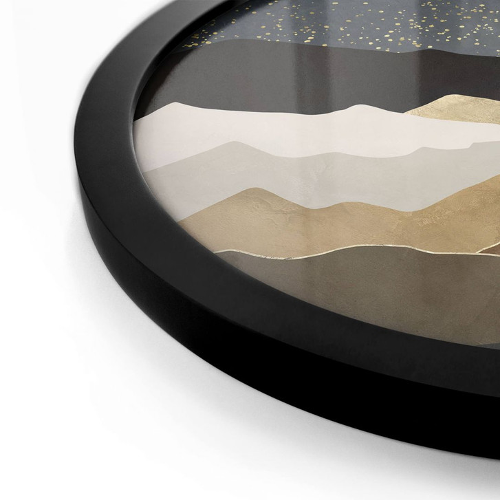 SpaceFrog-Designs lieben die Natur und das spiegelt sich in ihren Bildern wider. Ausgedehnte Berglandschaften sind hier von Bedeutung. Von Beige bis Schwarz: Berge sind hier in kontrastreichen Farben zu sehen. Der Vollmond und goldene Sterne vervollständigen die romantische Naturszene. Das geheimnisvolle und tiefgründige Landschaftsmotiv bei Nacht ist eine kunstvolle Ergänzung, um eine angenehme Atmosphäre im eigenen Zuhause zu schaffen. Ideal für deinen Schlafbereich – gestalte mit dieser grafischen Darstellung eine angenehme Umgebung, die für eine friedliche Nacht sorgt.