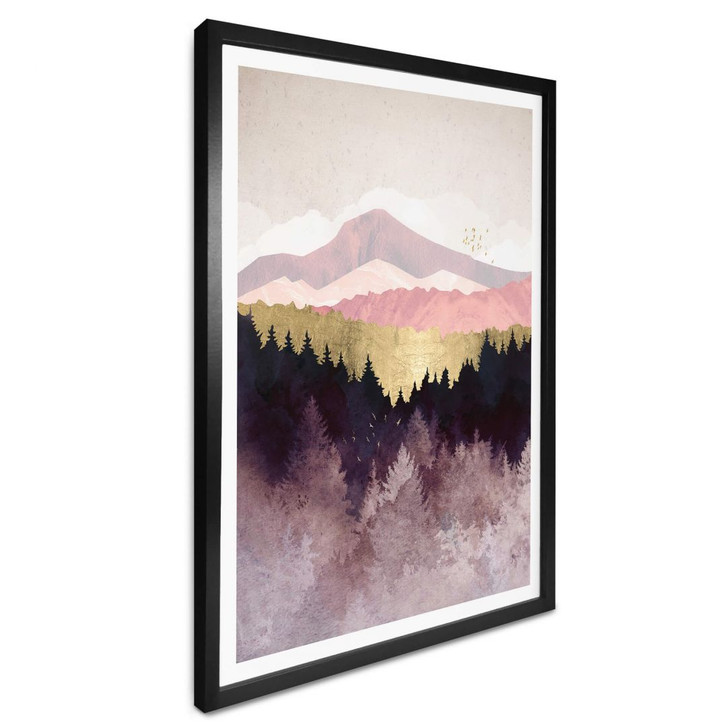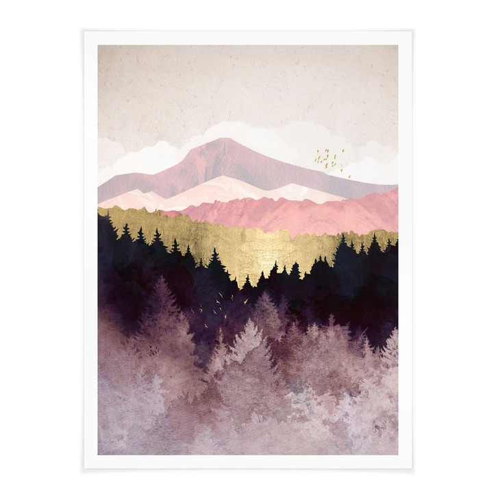 Der Wald in Violetttönen mit der imposanten Berglandschaft erweitert den Blick und verleiht dem Raum eine geheimnisvoll schöne Atmosphäre. Schliesse die Augen und gönne dir einen Moment der Ruhe und Harmonie. Der Blick auf die herbstliche Landschaft lädt sofort zum Entspannen ein. Denn diese natürliche Umgebung verströmt eine Stimmung, die belebt und beruhigt zugleich. Mit diesem Naturmotiv wird jede Wand zum wohltuenden Hingucker, an dem du täglich Kraft und Energie tanken kannst.