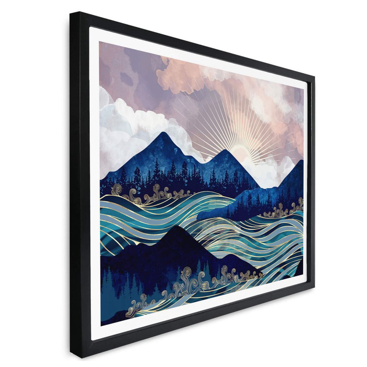 Hast du deinen eigenen Stil? Mit unserem Wandaccessoire kannst du ihn harmonisch in Szene setzen. Verleihe deinem Wohnbereich eine unverwechselbare Atmosphäre. Der Kunstdruck von SpaceFrog Designs zeigt eine eindrucksvolle Berglandschaft mit Bäumen. Im Mittelpunkt steht der turbulente Fluss mit den Wellen, der sich durch die Berge schlängelt.
