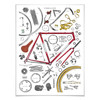 Fahrräder gibt es seit etwa 1817, damals wurde es Draisine bekannt. Das damals genannte Laufrad wurde von Karl Drais erfunden und leider wieder vergessen. Erst in der zweiten Hälfte des 19. Jahrhunderts entstanden wieder Laufräder und wurden bis zu unserem heute bekannten Fahrrad weiterentwickelt. Auf dem Motiv sieht man wie komplex ein heutiges Fahrrad aufgebaut ist. Von den einzelnen Speichen, über die Bremsen, bis zu einzelnen Schrauben hat David Sparshott alles sehr detailliert aufgezeichnet.