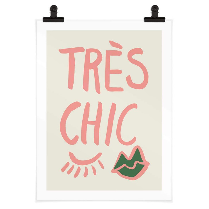 Hol dir das Modeposter nach Hause und sorge für einen schönen Farbtupfer an der Wand! Mit der pinken Aufschrift „Très chic“ und der Lippen-Illustration setzt du ein Statement, das zu den Themen Mode und Beauty passt. Mit dem Modespruch kannst du deinem Zuhause eine verspielte Note verleihen. Das Typografie-Poster kann beispielsweise in Wohn-, Schlaf- und Ankleidezimmern verwendet werden und schafft eine Wohlfühlatmosphäre.