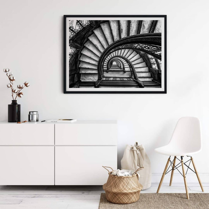 Kleine Veränderungen können eine grosse Wirkung haben: Accessoires und Wandkunst verleihen einer kahlen Wand ein schönes Aussehen, das sofort eine gemütliche Atmosphäre schafft. Gestalte deine Wände neu, hänge ausdrucksstarke Bilder an die Wand oder setze Akzente mit innovativen Dekorationselementen! Das Foto von Yimei Sun zeigt die schmiedeeiserne Treppe im sogenannten Rookery in Chicago. Die Wendeltreppe wurde 1886 gebaut.