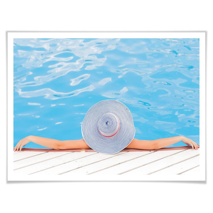 Die Fotografie einer Frau am Swimmingpool setzt tolle Akzente – auf Wunsch kannst du auch passende Washi-Tapes, Bilderrahmen oder Posterleisten zur Befestigung bestellen.
