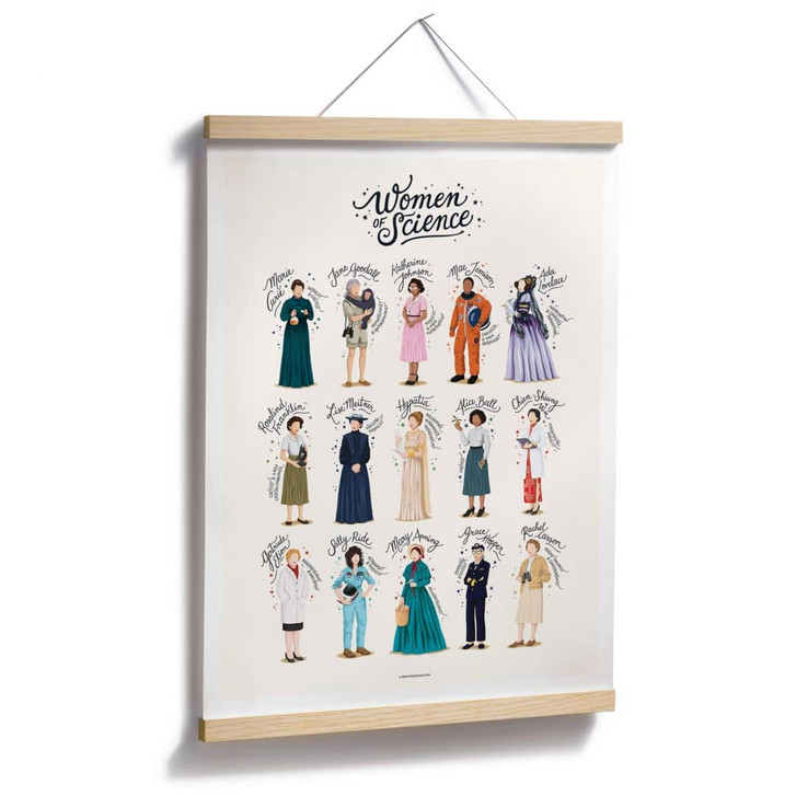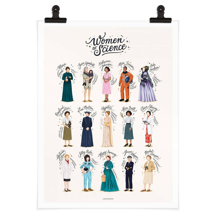 Die Wissenschaftlerin und zweifache Nobelpreisträgerin Marie Curie kennt jeder. Sie entdeckte zusammen mit ihrem Mann Pierre Curie die Radioaktivität. Doch auch die anderen Frauen, die Grosses für die Wissenschaft geleistet und damit Geschichte geschrieben haben, sollten nicht vergessen werden: Grace Hopper war eine erfolgreiche Informatikerin, Lise Meitner eine Physikerin, Ada Lovelace eine Mathematikerin, Gertrude Belle Elion eine Arzneimittelforscherin und Mae Jemison ging als Ärztin und Astronautin in die Geschichte ein. Die meisten Wissenschaftlerinnen blieben im Schatten ihrer männlichen Kollegen und ohne Auszeichnung. Die bemerkenswerten Frauen können jedoch heute für viele Mädchen Vorbilder sein – sie beweisen, dass Frauen genauso talentiert und erfolgreich sein können. Mit der Illustration holst du dir die berühmtesten Wissenschaftlerinnen auf einen Blick an deine Wände. Ob für das Wohnzimmer oder das Kinderzimmer: Diese Frauen erinnern uns daran, dass wir unsere Ziele erreichen können, wie schwierig der Weg auch sein mag.