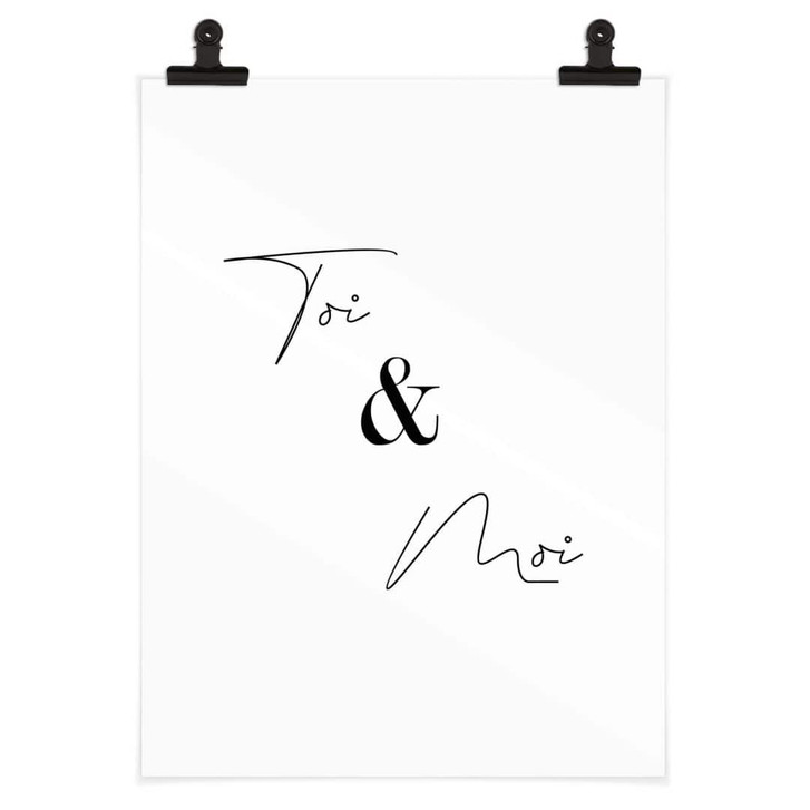 Du und ich gehören einfach zusammen – mit dem französischen Spruch „Toi et moi“ kannst du einem Freund zeigen, wie wichtig dir diese Person ist. Das Poster kann als Liebeserklärung oder als Zeichen der Freundschaft verwendet werden und setzt mit seiner schwarz-weissen Typografie schlichte, aber ausdrucksstarke Akzente im Raum.