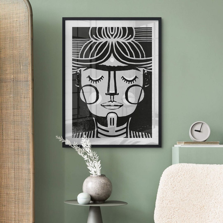 Das Poster begeistert mit dem Porträt in Schwarz-Grau. Es lässt sich schnell und einfach in vielen Räumen anbringen und schafft einen kreativen Blickfang. Dieses Wandbild kann nach Belieben angeheftet, angeklebt oder gerahmt werden.