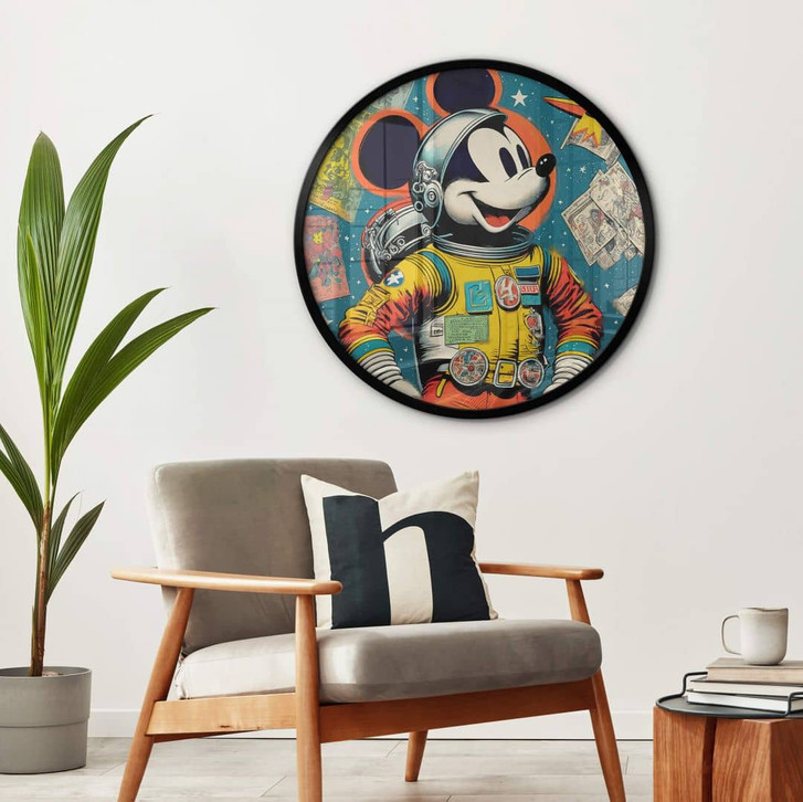 Poster Treechild - Mickey als Astronaut im Retro Stil - Rund