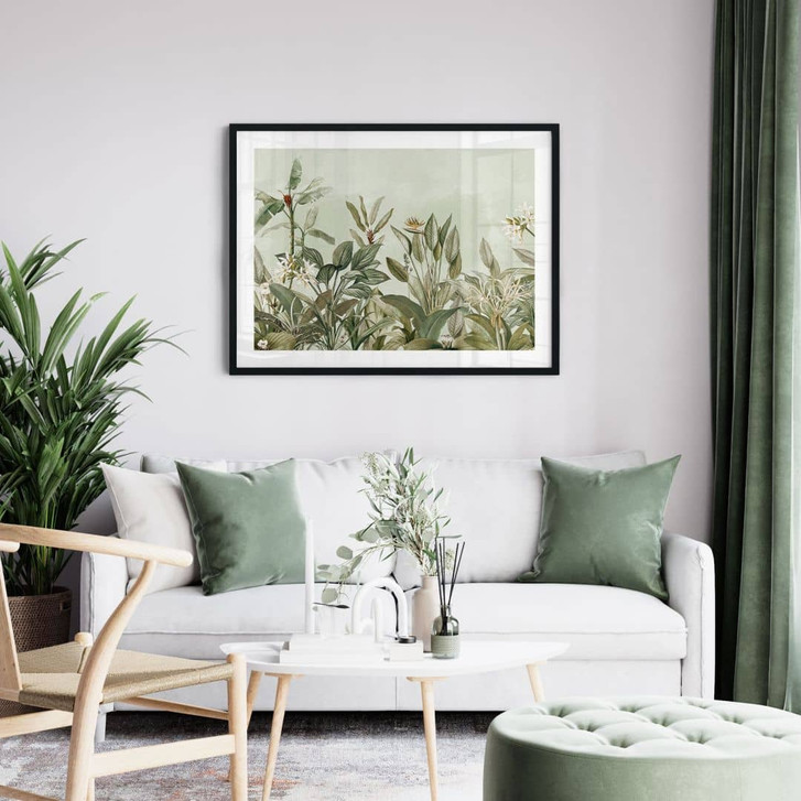 Bereichere dein Zuhause mit raffinierten Bildern und schaffe einen gemütlichen Ort zum Verweilen! Der Kunstdruck von UN Designs zeigt verschiedene tropische Pflanzen. Das Blumenwandbild präsentiert dem Betrachter Pflanzen wie die rote Banane, die Strelitzie, die Gewürzlilie oder die Vanille.