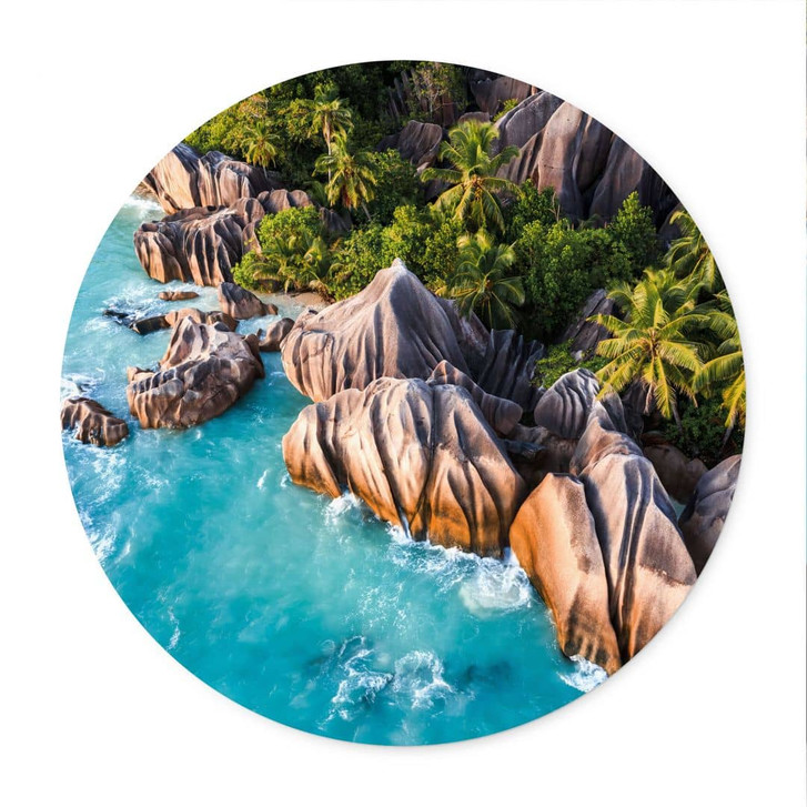 Poster Tropische Felsenküste der Seychellen - Colombo - Rund
