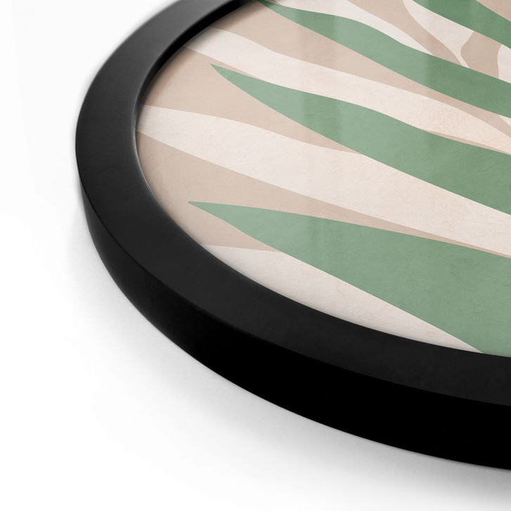 Sanfte Formen, klare Ruhe – tropisches Design im runden Format.