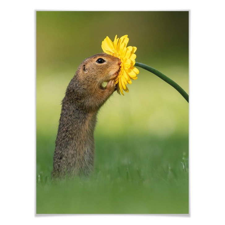 Ein Ziesel schnüffelt verzückt an einer Blume mitten auf einer Wiese in Wien. Dick van Duijn war im Jahr zuvor an diesem Ort gewesen und kannte diesen Lieblingsplatz von Eichhörnchen, Zieseln und Erdhörnchen, aber das Foto wurde ganz spontan aufgenommen. Kaum hatten die New York Post, Fox News und die Daily Mail das süsse Foto geteilt, war es überall das Thema Nummer eins! Seitdem spricht jeder über das niedliche Tier mit der Blume.