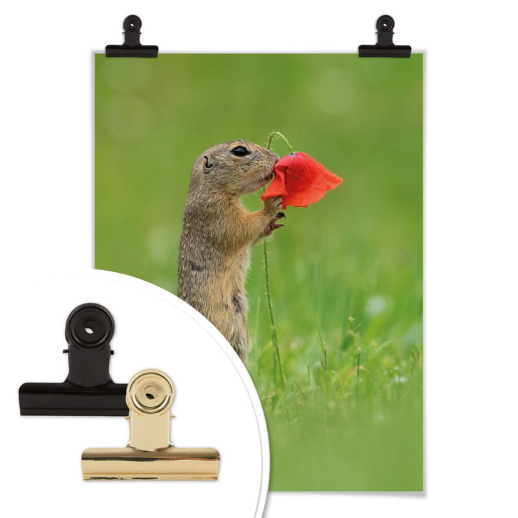 Poster van Duijn - Erdhörnchen mit Mohnblume