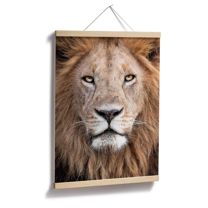 Majestätisch blickt der König der Tiere in die Kamera. Der Löwe ist ein Raubtier, das mit seiner starken Ausstrahlung und der auffälligen Mähne die Blicke auf sich zieht. Der Löwe steht für Mut, Stärke und Durchsetzungsvermögen. Dieses wilde Fotomotiv eignet sich ideal für den Flur als Aushängeschild im eigenen Zuhause. Aber auch im Wohn- und Schlafzimmer sorgt das Löwenbild für eine tolle Atmosphäre. Gestalte mit dieser Tierfotografie eine eindrucksvolle Wand!