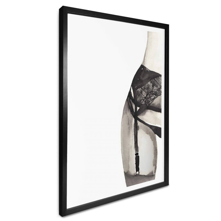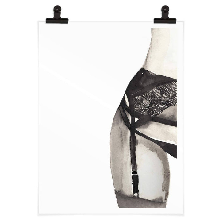 Das Aquarellbild zeigt einen Ausschnitt einer Frau in schwarzer Unterwäsche. Den Rest überlässt es deiner Fantasie. Mit dem Motiv aus der erotischen und schwarz-weissen Themenserie wirkt das Werk besonders kontrastreich und ist zusammen mit dem Hochformat eine wahre Augenweide. Bereichere dein Schlafzimmer mit attraktiven Designs und schaffe eine gemütliche Atmosphäre, in der du dich wie zu Hause fühlen kannst. Das minimalistische Design passt zu vielen Einrichtungsstilen und schafft eine trendige Wand im Schwarz-Weiss-Stil.