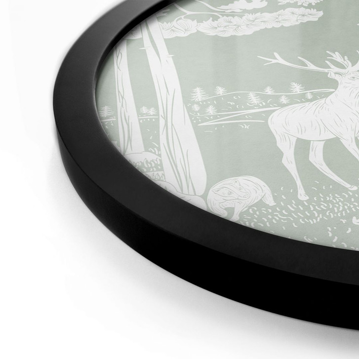 Dieses runde Poster mit Rahmen von Kikki Belle bringt die sanfte Schönheit des Waldes in dein Zuhause. Die harmonische Farbgebung in beruhigenden Grüntönen und die zarten Tier- und Pflanzenmotive schaffen eine entspannte, natürliche Atmosphäre. Der elegante schwarze Rahmen setzt das Motiv stilvoll in Szene und verleiht dem Design eine zeitlose Eleganz.