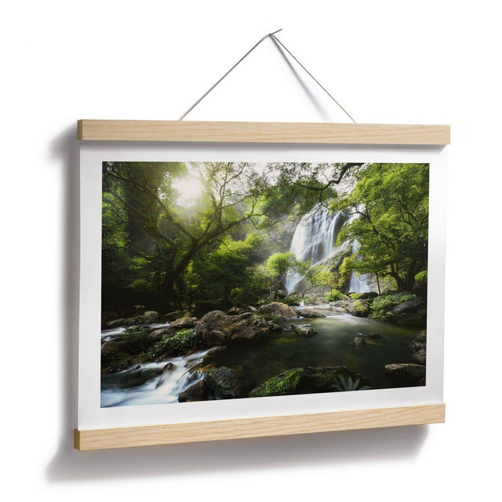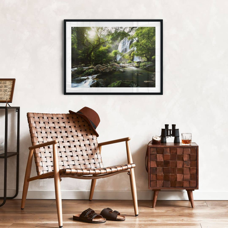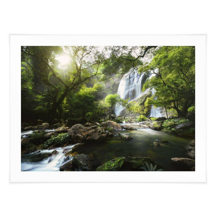 Komm nach Hause und entspanne dich einfach. Dieses beruhigende Bild wird dir ein Gefühl von Gemütlichkeit und Willkommensein vermitteln. Hol dir ein Stück grüne Oase mit Wasserfall ins Haus! Mit Naturfotografie lässt sich das Wohlbefinden in den eigenen vier Wänden steigern. Ob im Badezimmer, im Wohn- oder Schlafzimmer – mit dieser sonnigen Landschaft und dem malerischen Wasserfall ist Entspannung garantiert. Verleihe deinem Zuhause einen natürlichen Look, damit du und deine Familie sich rundum wohlfühlen. Das Poster im Querformat verleiht deinem Zuhause ein natürliches Wohnflair, das sich über den gesamten Raum erstreckt. Das Wandmotiv besticht durch seinen hervorragenden Druck in grünen Farben. Den passenden Bilderrahmen und weiteres Zubehör kannst du gleich mitbestellen.
