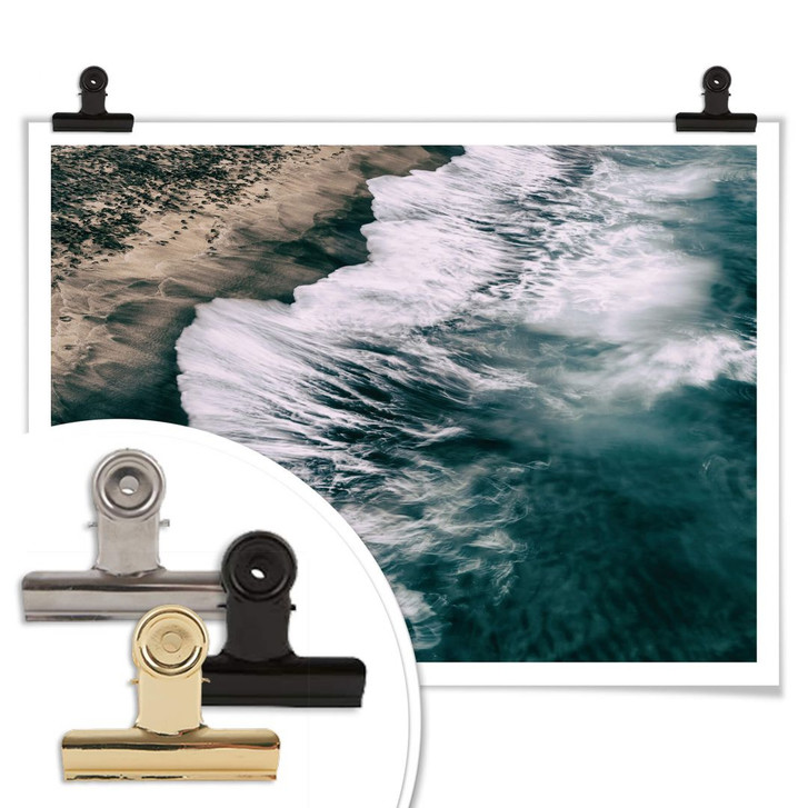 Die Vogelperspektive auf den von Wellen gepeitschten Ozean, die Vogelperspektive auf die Wellen, die Ufer setzt tolle Akzente – auf Wunsch können Sie auch passende Washi-Tapes, Bilderrahmen oder Posterleisten zur Befestigung bestellen.