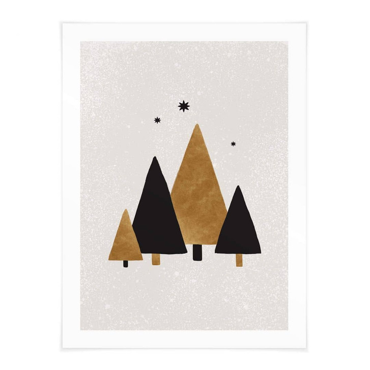 Poster mit goldenen und schwarzen Tannenbäumen bringen eine harmonische Winteratmosphäre in deine Räume.