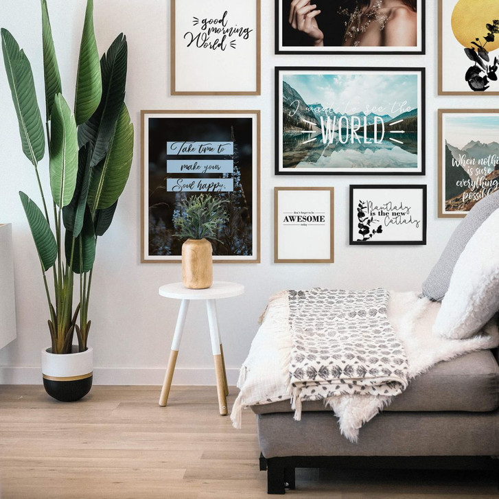 - Montagevorschläge: Tesa Tacks, Washi Tape, Posterleiste aus Eichenholz, hochwertige Posterklemmen aus Metall oder Bilderrahmen