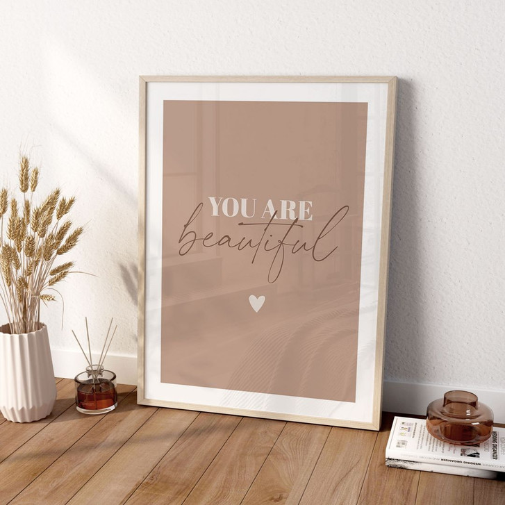 Das klassische „You Are Beautiful“-Poster bringt frische Inspiration in deine Wohn- oder Arbeitsräume. Die klare Schrift und das schlichte Design schaffen eine moderne, stilvolle Atmosphäre, die positive Energie ausstrahlt.